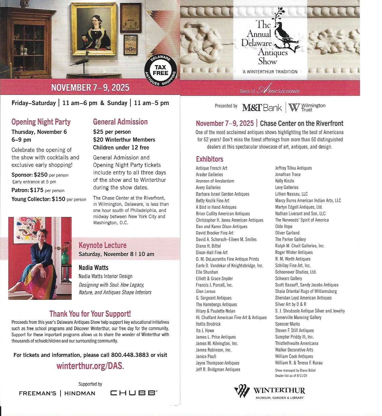 The show opens with a Preview Party on November 6th, 6-9 pm. The show brochure gives details for those who want to attend the Preview Party as well as show information for those of you who can attend the show on November 7th-9th.